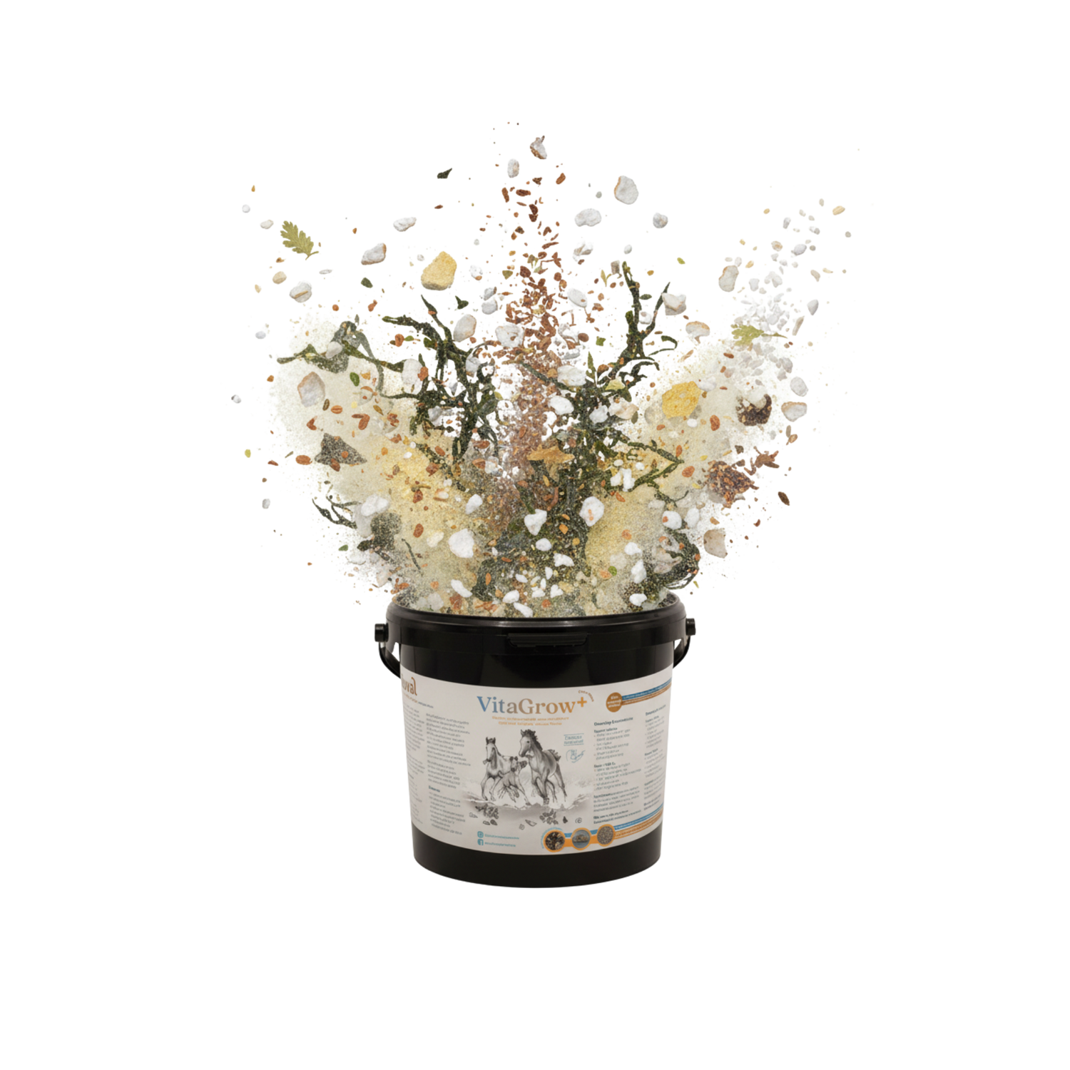 Veel jonge dieren krijgen na het spenen of tijdens wintermaanden te maken met wisselingen in weerstand, groei­dipjes of een lagere benutting van voedingsstoffen. VitaGrow+ ondersteunt juist in deze kwetsbare periodes. Het helpt veulens die afhankelijk zijn van wisselende weidekwaliteit, beperkt ruwvoer krijgen of een hogere behoefte hebben door snelle groei. Ook bij jonge paarden die veel tijd op stal of in natte weides doorbrengen, draagt het bij aan vitaliteit, vachtkwaliteit en een gezonde vertering.