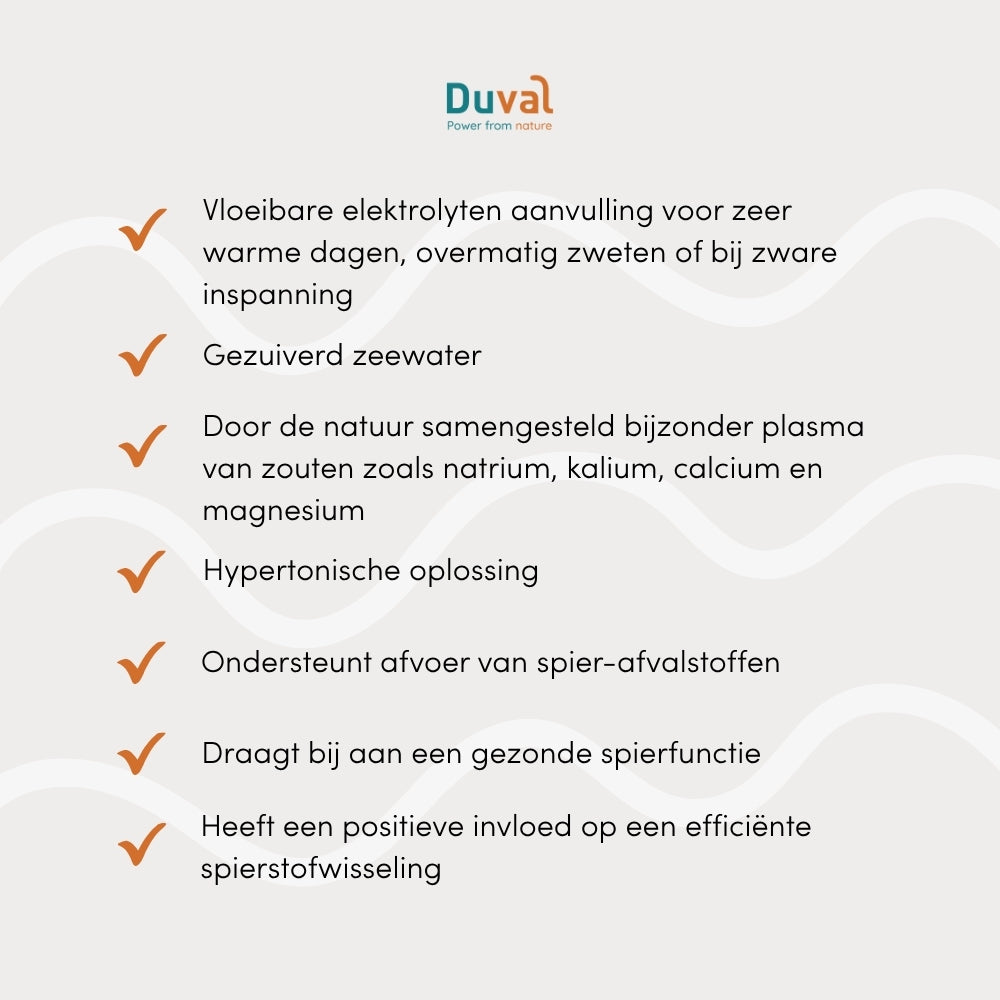 Duval Relyte+ is ontwikkeld voor paarden die door warm weer, intensieve training of langdurige inspanning veel vocht en mineralen verliezen. Bij zweten gaan niet alleen water, maar ook essentiële elektrolyten verloren, zoals natrium, kalium, calcium en magnesium — cruciaal voor een stabiele vochtbalans, normale spierfunctie en een efficiënt herstel.